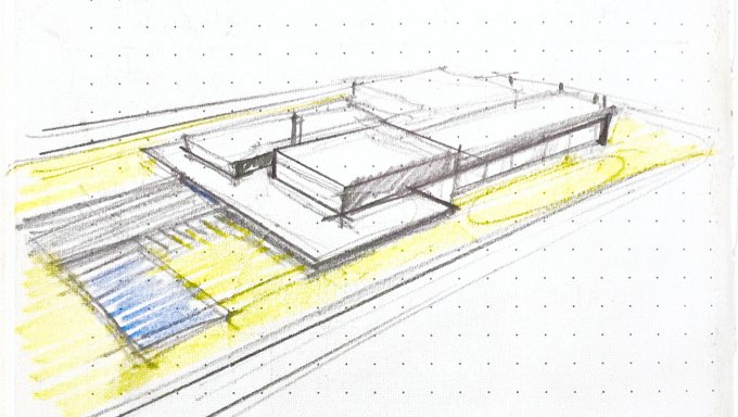 Esboço, base de desenvolvimento da solução que deu origem ao projeto final · grafite e lápis de cor sobre papel