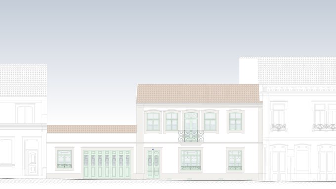 Alçado poente na reabilitação proposta · Desenho técnico