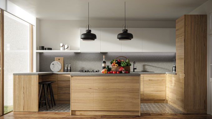 Perspectiva da cozinha · Modelo digital 3D