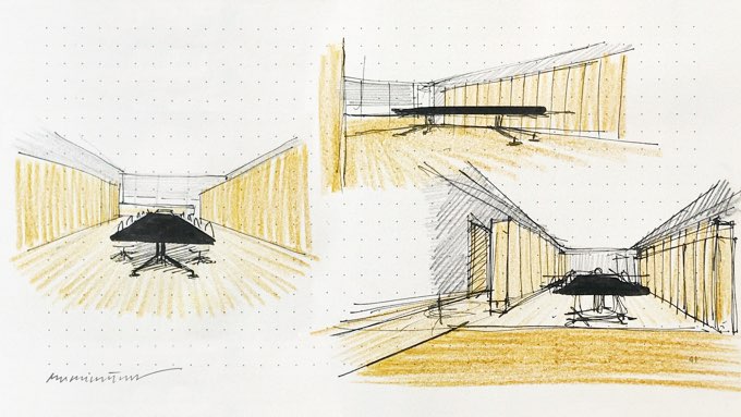 Esboço, base de desenvolvimento da solução que deu origem ao projeto final · tinta e lápis de cor sobre papel